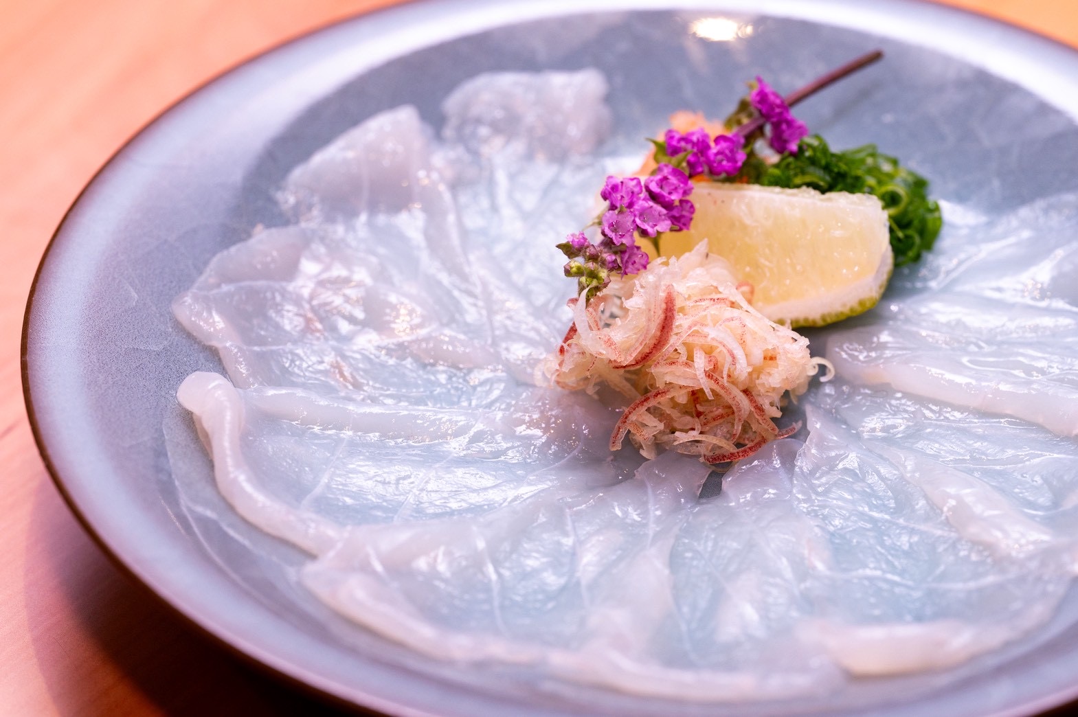 温かみのある心地良い雰囲気に包まれながら、その時季の上質なふぐを堪能…そんな至福のひとときをお届けいたします。「厚切り熟成てっさ」や「焼きふぐ」など、様々な調理法を駆使した当店ならではの逸品が味わえるふぐづくしのコースをご提供。日本古来の独自の酒文化である「ひれ酒」や、利き酒師厳選の日本酒をお供にお愉しみください。個室とカウンター席を備えたモダンな空間で、特別なひととときをお過ごしいただけます。