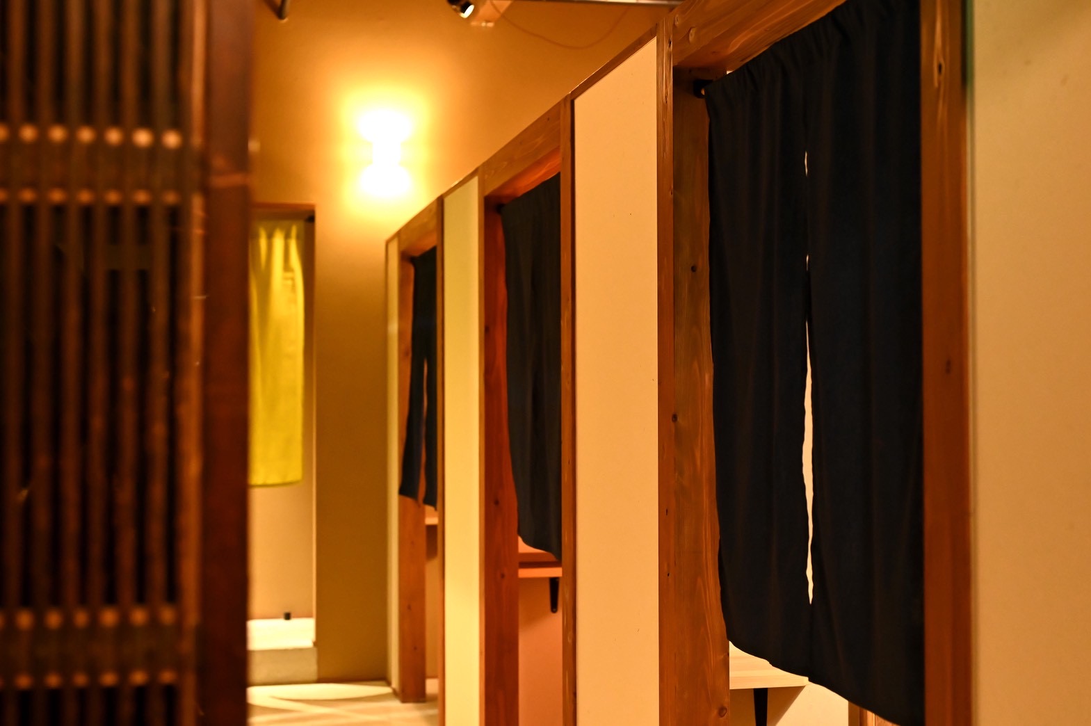 コース料理を提供するふぐ倶楽部miyawaki別邸に隣接し、路地裏に立つ古民家の一角にある立ち飲み酒場。 看板料理のふぐをリーズナブルに楽しめ、ふぐ屋の定番『ひれ酒』から日本全国の日本酒も気軽に楽しめます。予約不要で空いていればご案内できます。気さくなスタッフがお出迎えいたします。ぜひお気軽にお立ち寄り下さい。